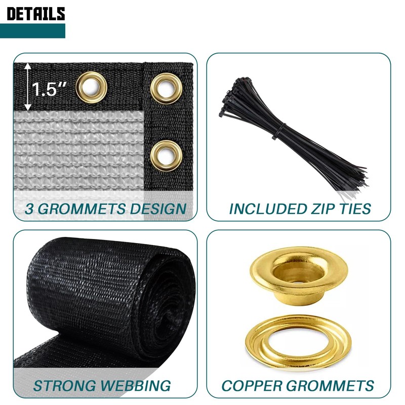 - 【EASY TO INSTALL】: After unfolding the privacy screen use zip ties to fasten the grommets to the fence on each side, no professionals and tools are needed to complete the installation. (Zipties included in the package)