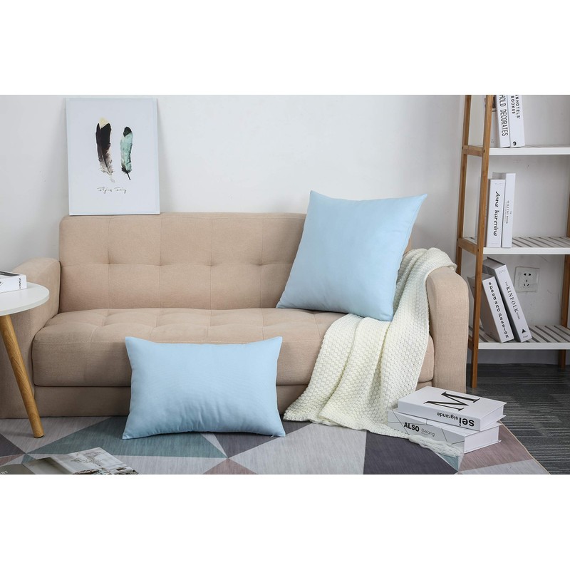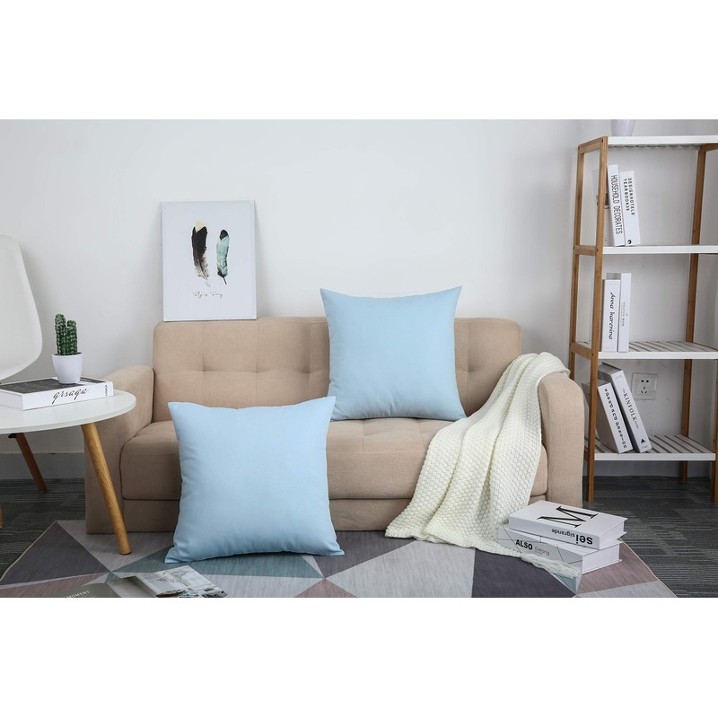 - Size, Color & Design: 16"x16", Light blue. Both the front and the back of the pillow cover have the same color. Choice of 12 Great Colors: Apple green, Brilliant rose, Dark Navy, Deep coffee, Khaki, Light blue, Light coffee, Red, Salmon pink, Watermelon Red, Wine and Yellow.