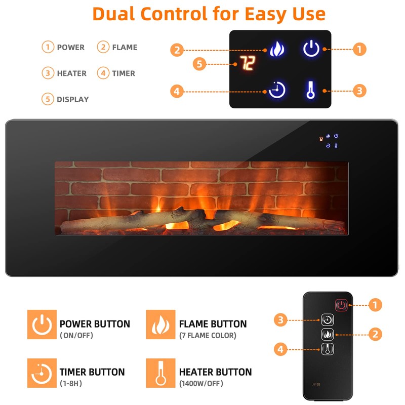 - Flexible Operating Modes: The touch screen makes control more convenient, and all the instructions are illustrated on the LED display clearly from far away. Besides, the remote creates a convenient use experience, so that you can make temperature setting, timer setting, heat setting, flame setting without leaving where you are.