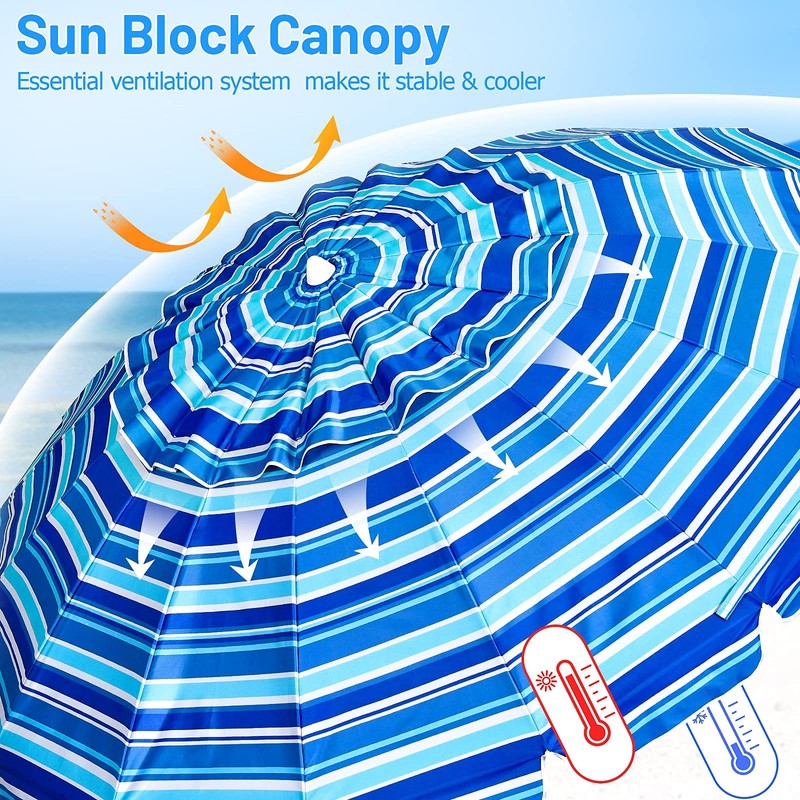 - 🏖️Sturdy & Stable Structure🏖️: The thickened steel pole and 16 sturdy fiberglass ribs makes the umbrella more stable, durable and not easy to deform. Besides, the air vent on the top is able to facilitate air flow and adds additional stability of the umbrella.