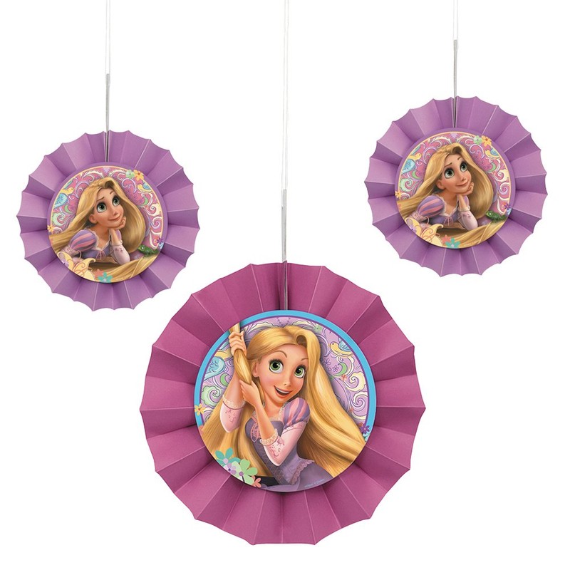 Tangled Rapunzel Tissue Paper Fans - 8" & 6", 3 Pcs