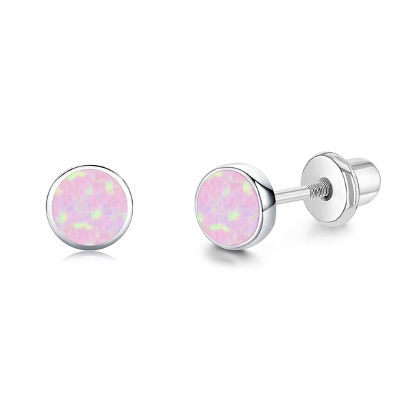 TANGPOET Pink Opal Screw Twist Back Stud Earrings for Women Small 925 Sterling Silver Hypoallergenic Earrings for Sensitive Ears Christmas Stocking Stuffers Birthday Gifts