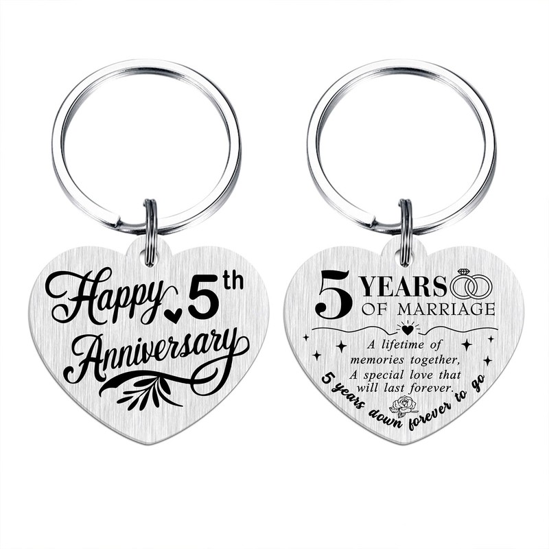 Tangvo 5 Years Anniversary Keychain - Happy 5th Wedding Anniversary Present