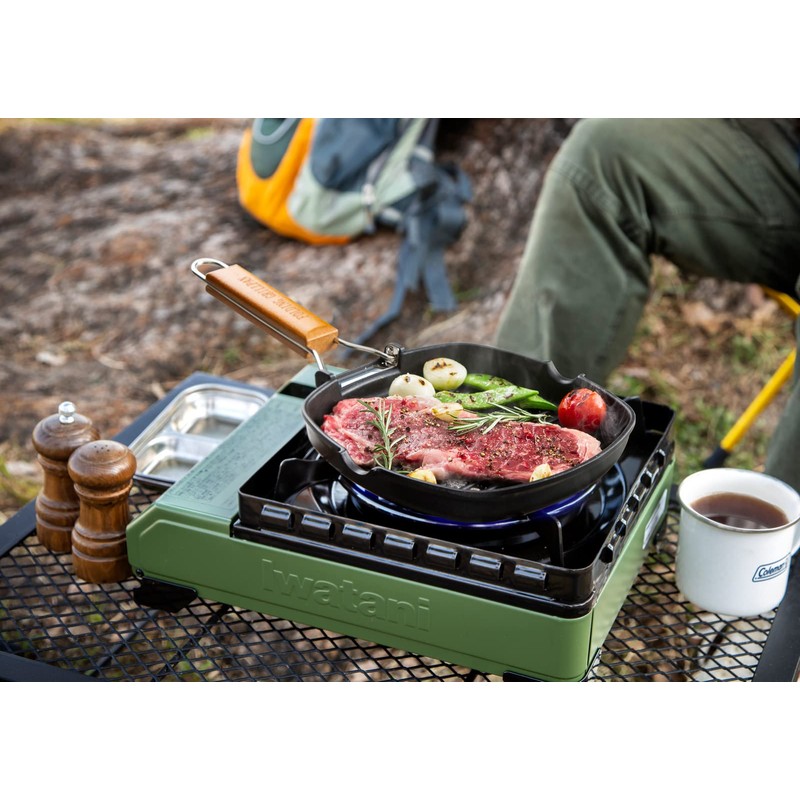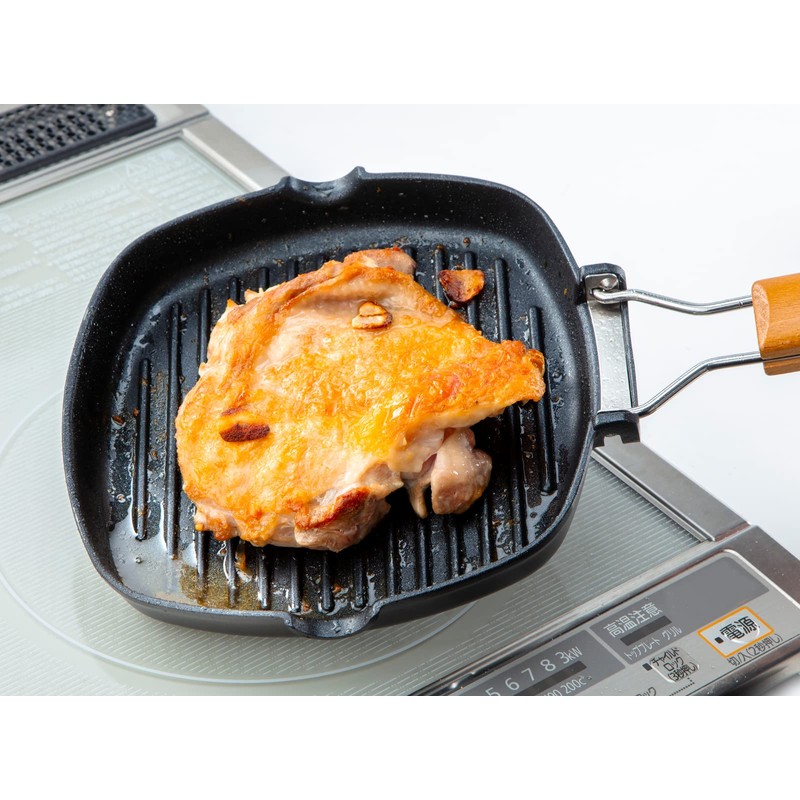 Taniguchi Metal Grill Pan, 7.9 x 7.9 inches (20 x 20 cm), Induction Compatible, Fluorine Treatment, Handle, Natural Wood, Foldable, Folding