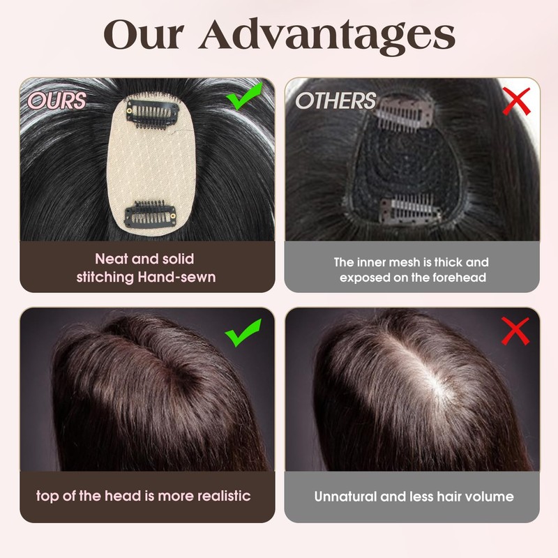 - Premium Material Hair Topper: This hair toppers for women real human hair are made of 100% human hair no tangle,no shedding and can be straightened or curled according to your hairstyle. Will make you looks more charming and beautiful.