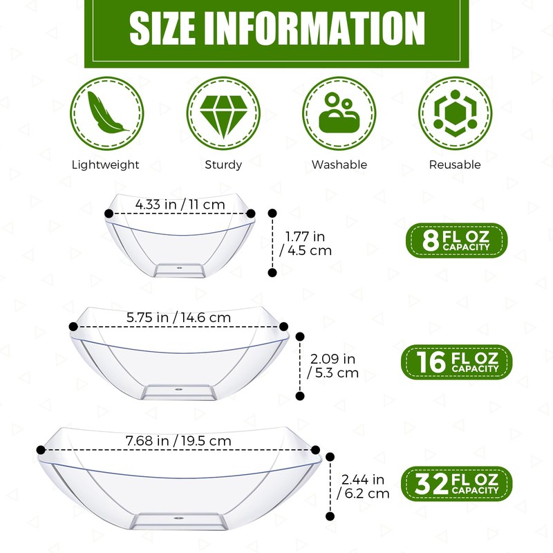 - Reliable Material: the salad bowls for party are made of quality plastic, sturdy and strong, not easy to break or deform, lightweight and portable, hold hot food below 85 degrees,which is very suitable for kitchen, dining room, living room