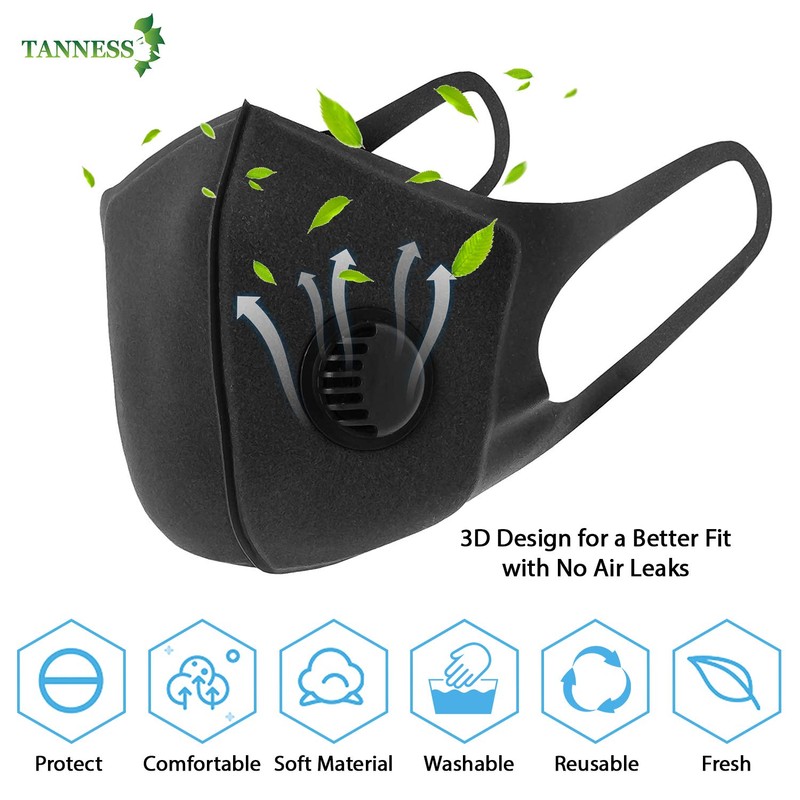 Tanness 6 Pack, Anti Dust Breathing Valve Face Mask, Skin Friendly Unisex Mouth Cover, Reusable & Washable face Covering Running, Cycling, Outdoor Activities (Black)