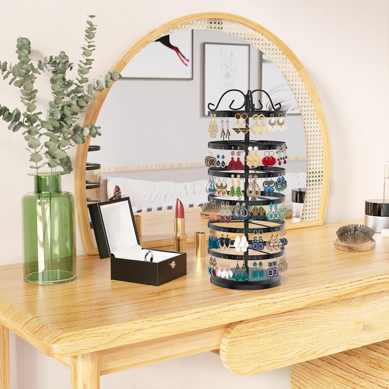 - Smooth rotating display: Our earring tree organiser with a 360 degree rotating table and each layer can be rotated individually; whether you are in a hurry or make an display for your friend, simply turn the display stand and earrings will go together with the frame for easy viewing.