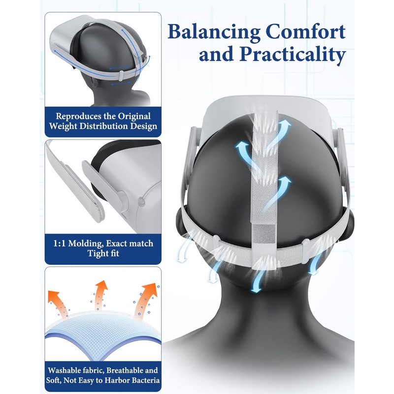 • Original Replacement for oculus quest 2 Upgrade your meta quest 2 VR headset with our meticulously crafted replacement Headstrap. This headstrap designed for oculus quest 2Specifically, this Headstrap is not compatible with other VR headsets. It mirrors the exact functionality of the original headset Headstrap for meta quest 2 VR while rejuvenating your headset's appearance by replacing your worn-out Headstrap.