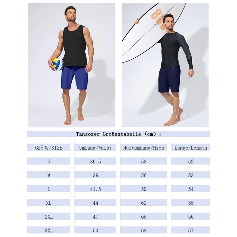 Tansozer Men's Quick-Drying Swimming Shorts Board Shorts Swimming Trunks with Mesh Lining and Zip Pocket, blue, 3 XL