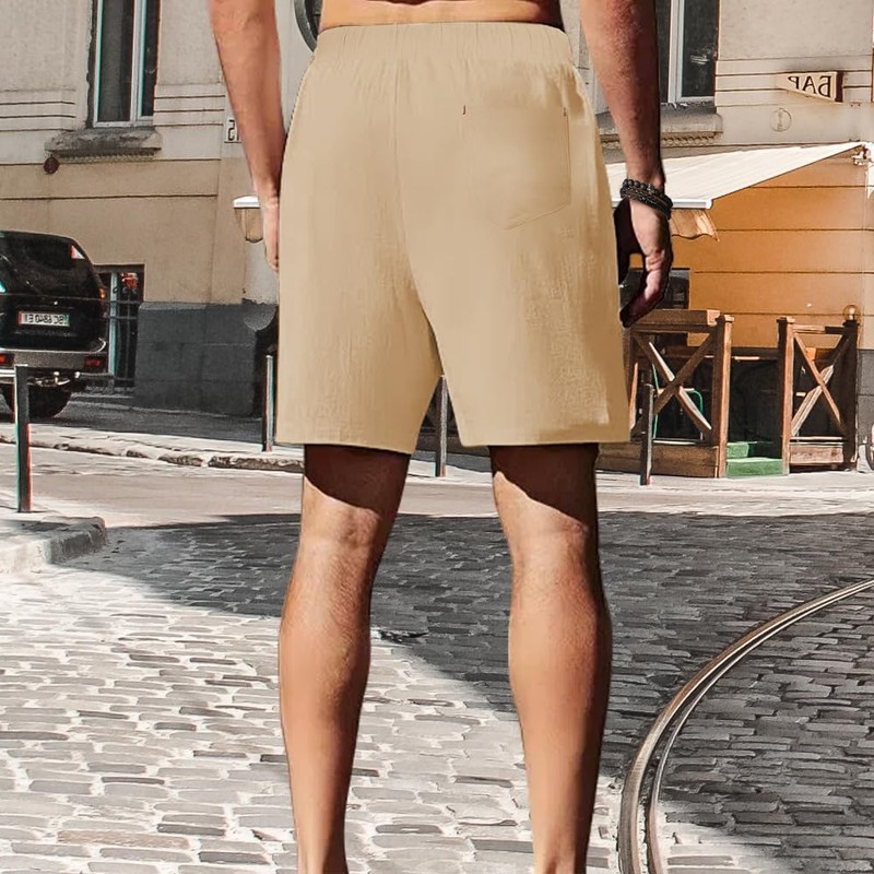 Tansozer Mens Summer Casual Cotton Shorts with Pockets Elasticated Waist Khaki XXL