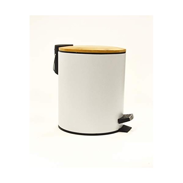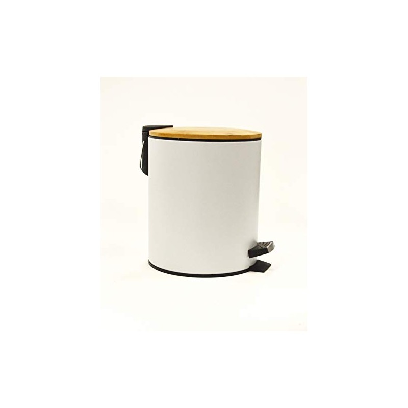 TAO Matte White 5L Step CAN W/Removable Plastic Liner & Bamboo Soft Close LID
