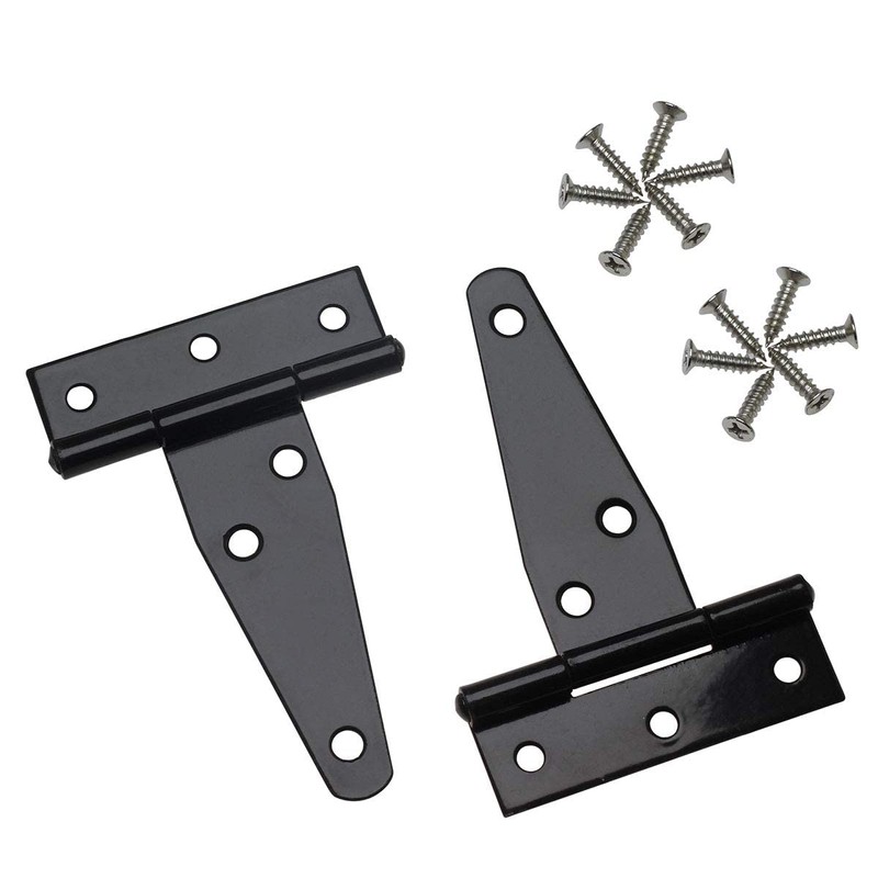 - Package included:4pcs T Hinge Shed Hinge Gate Strap Hinge.Come with M5 screws.