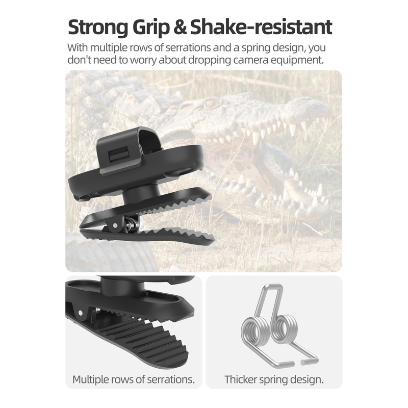 - Serrated teeth and strong clamps. Multiple rows of serrated teeth and springs, you don't have to worry about your device falling off
