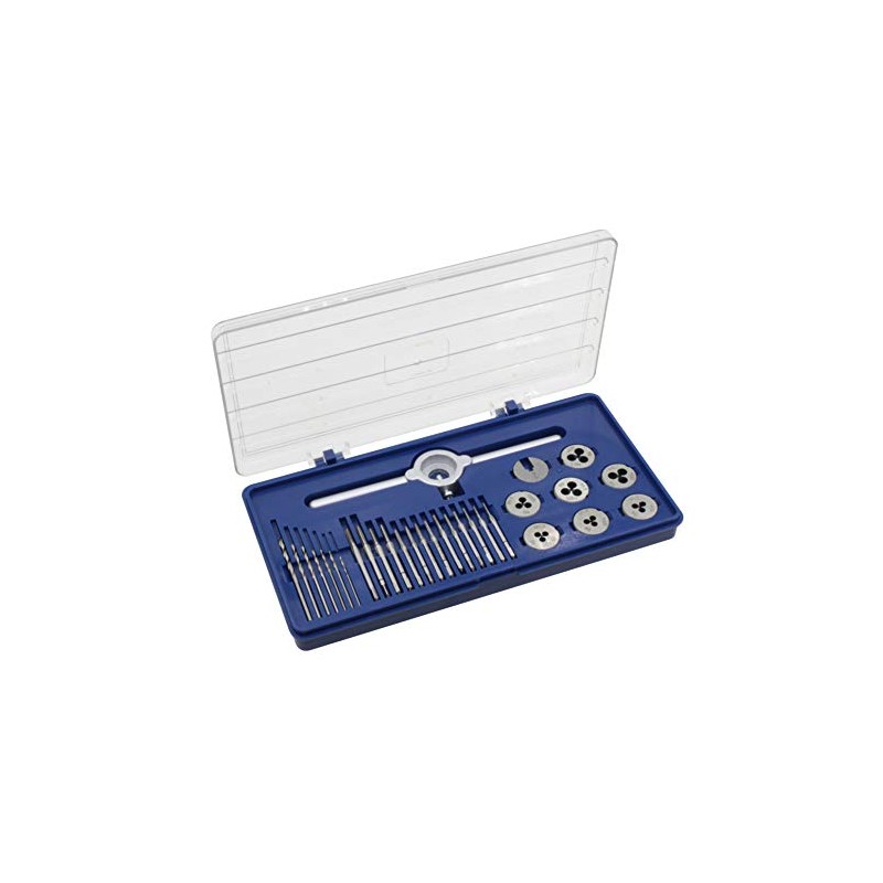Tap and Die Set M 1 to M 2.5 with Hand Taps, Die Holder and Matching Core Drills