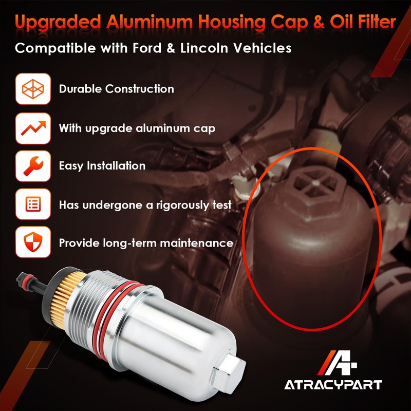 Upgraded Aluminum Housing Cap & Oil Filter, Compatible With 2015-2024 Ford Fusion F150 Bronco Edge Explorer Ranger, Lincoln MKX MKZ Continental Aviator 2.7L Engines, Replace OE# FT4Z-6A832-C