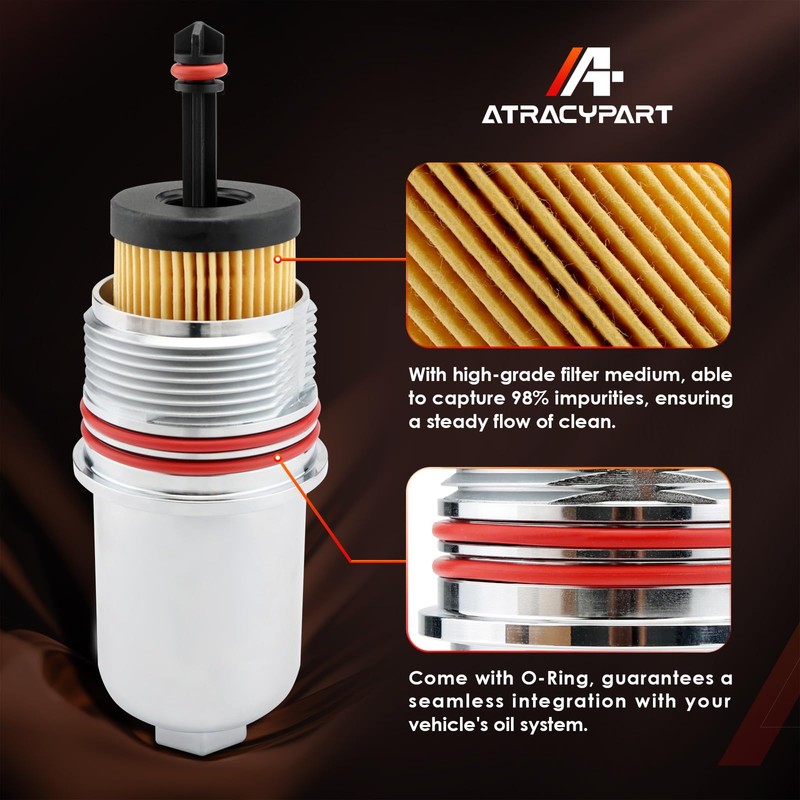 - Calidad prémium: la tapa de la carcasa está hecha de aluminio duradero, proporciona una resistencia superior y resistencia a la corrosión, lo que garantiza un rendimiento duradero. Cuenta con roscado preciso y un sello seguro, lo que hace que la instalación sea rápida y sin complicaciones. La construcción de aluminio también permite una disipación eficiente del calor, evitando el sobrecalentamiento y manteniendo las condiciones óptimas de funcionamiento del filtro de aceite.