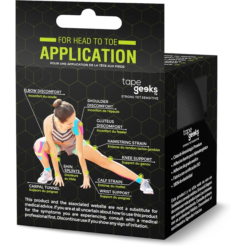 Discover the Ultimate Support with TapeGeeks Athletic Tape Whether you're a professional athlete or an active individual, our TapeGeeks Athletic Tape is tailored to boost your performance and recovery. Designed to meet the demands of any high-impact activity, our tape provides reliable support so you can focus on exceeding your limits. Key Features & Benefits: Advanced Muscle & Joint Support:Our ISO Certified Kinesiology Tape effectively stabilizes muscles and joints, elevating your physical condition by lifting the skin tissue to promote better blood flow. This crucial support helps reduce pain, enhances muscle recovery, and prevents injuries in key areas like the back, shoulders, wrists, and knees.Engineered for Durability & Comfort:Crafted with a hypoallergenic acrylic adhesive, our tape ensures comfort even during long periods of wear. The strong adhesive stays in place through sweat and water but is gentle upon removal, leaving no residue or skin irritation.Versatile Athletic Aid:TapeGeeks Athletic Tape is not just for professional athletes but also for anyone involved in physically demanding activities. Whether you are into swimming, running, yoga, or weightlifting, this tape provides the necessary support and fatigue reduction to help you maintain optimal alignment and movement.Hypoallergenic & Water-Resistant:Designed with your skin's safety in mind, our tape is free from irritating substances and offers impressive water resistance, making it suitable for scenarios from intense gym sessions to competitive water sports.Flexible Purchase Options:Available in a variety of colors and both pre-cut and uncut options, our kinesiology tape meets your personal preference and specific application needs. Choose the style that best fits your routine and aesthetic.Who Should Use TapeGeeks Athletic Tape? Ideal for athletes, fitness enthusiasts, physical therapists, and anyone seeking extra muscle support and enhanced performance during their physical activities. Perfect for everyday heroes like working men and women who need that extra support throughout their active day. Experience the TapeGeeks Difference: Don't just take our word for it, experience the enhanced performance and recovery benefits yourself. Our commitment to quality ensures that each roll of TapeGeeks Athletic Tape is a step towards achieving your peak physical potential. Elevate your game, support your body, and achieve new heights with TapeGeeks Athletic Tape—where technology meets human resilience.