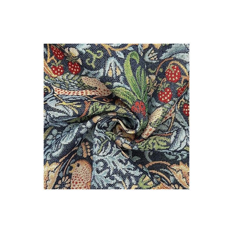 Tapestry Fabric - William Morris Strawberry Thief Navy Blue - Bird & Floral Design Upholstery Curtain Cushion Fabric Material (100cm x 140cm)