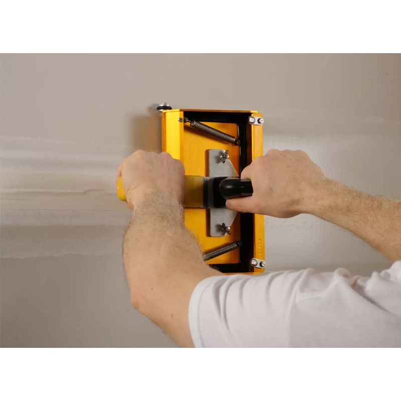 The new model 8000TT Wizard® handle from TapeTech provides unmatched control, maximum access and eliminates the learning curve of using traditional finishing box brake handles. The Wizard is the only finishing box handle that places your hand directly over the pressure plate, reducing the effort required while providing superior control. The Wizard fits into the smallest closets or under stairs and is much safer for workers on scaffolding compared to using a finishing box handle of any other length. The Wizard isn’t limited to just tight spaces or scaffolds. The Wizard is the absolute fastest and easiest way to finish any joints, especially horizontal joints. The innovative design, including the ability to reverse the front handle, allows for multiple ergonomic hand positions to reduce worker fatigue and increase productivity. Every drywall finisher needs the Wizard in their toolbox!