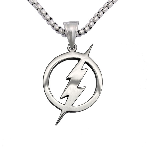 Tapp Collections 316L Stainless Steel Superhero Flash Lightning Bolt Pendant Necklace - Silver Color