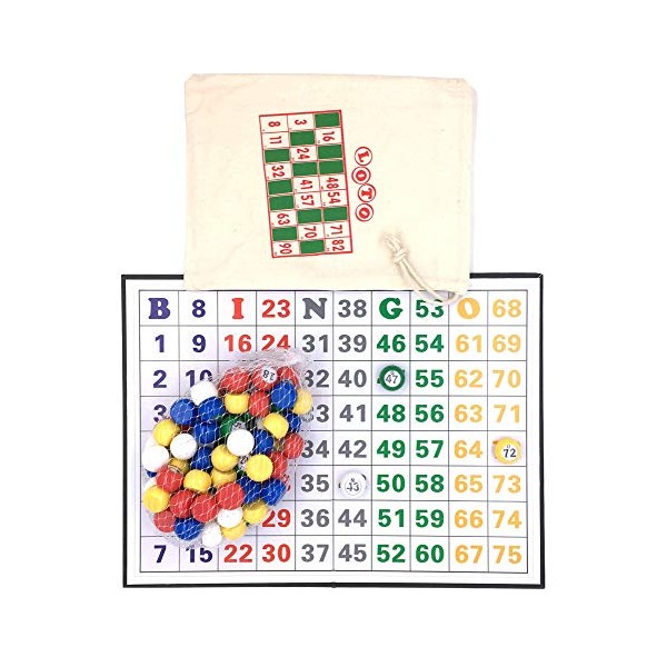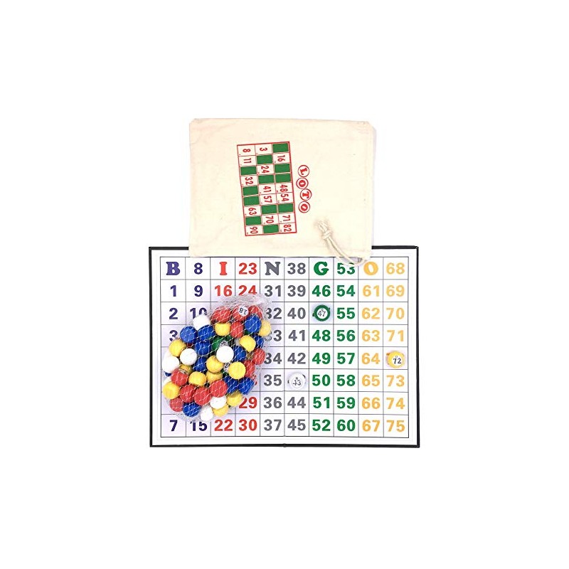 - The board is printed with the numbers 1 - 75, and there are spaces for putting the corresponding balls underneath their numbers; Foldable board: 14.2" x 10.6" (when opened); Drawsting Canvas bag: 9.5" x 7.2"