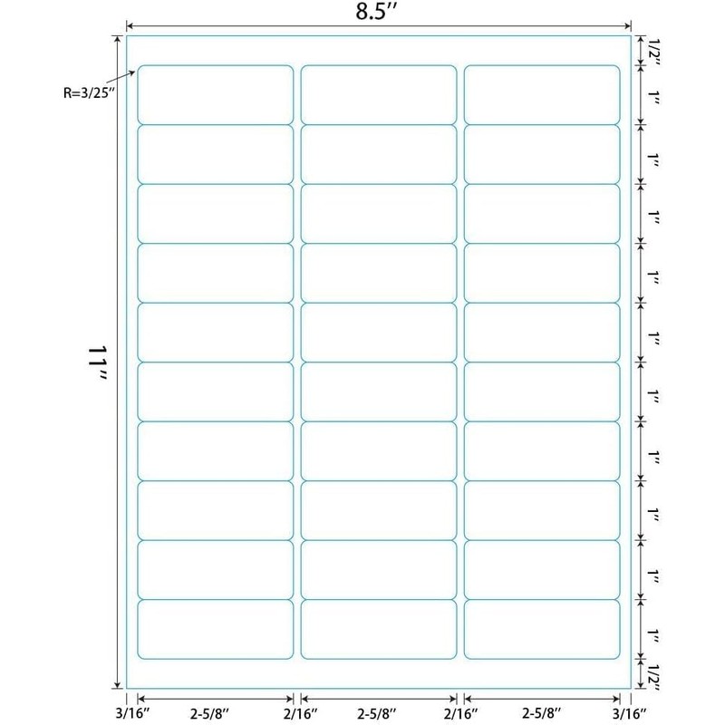 - Label size: 1" X 2-5/8", sheet size: 8.5" X 11". Address labels 30 per sheet, total 30 sheets, 900 label.