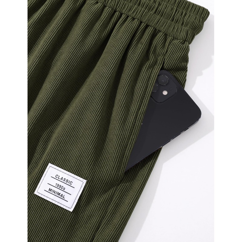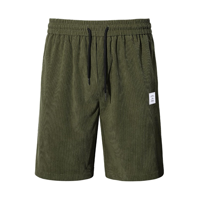 TARAINYA Corduroy Men's Cotton Drawstring Shorts Men's Summer Stretch Casual Shorts with Pockets, c army green, L