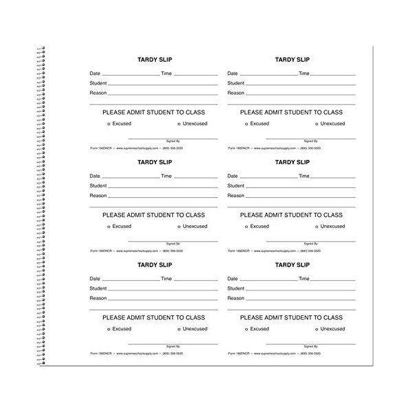Tardy Slip Book with Carbonless Duplicates 196D-NCR