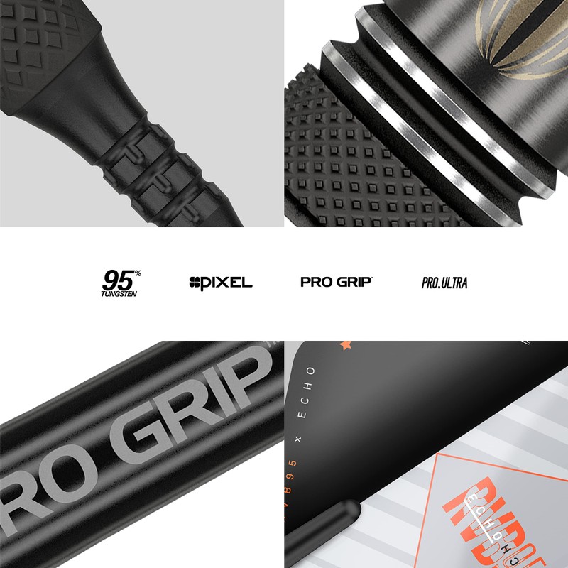 - Stylish Design - The range is completed with Black Pro Grip shaft exclusive to RVB x Echo and signature RVB x Echo flights incorporating the black and dark grey themes from the Echo