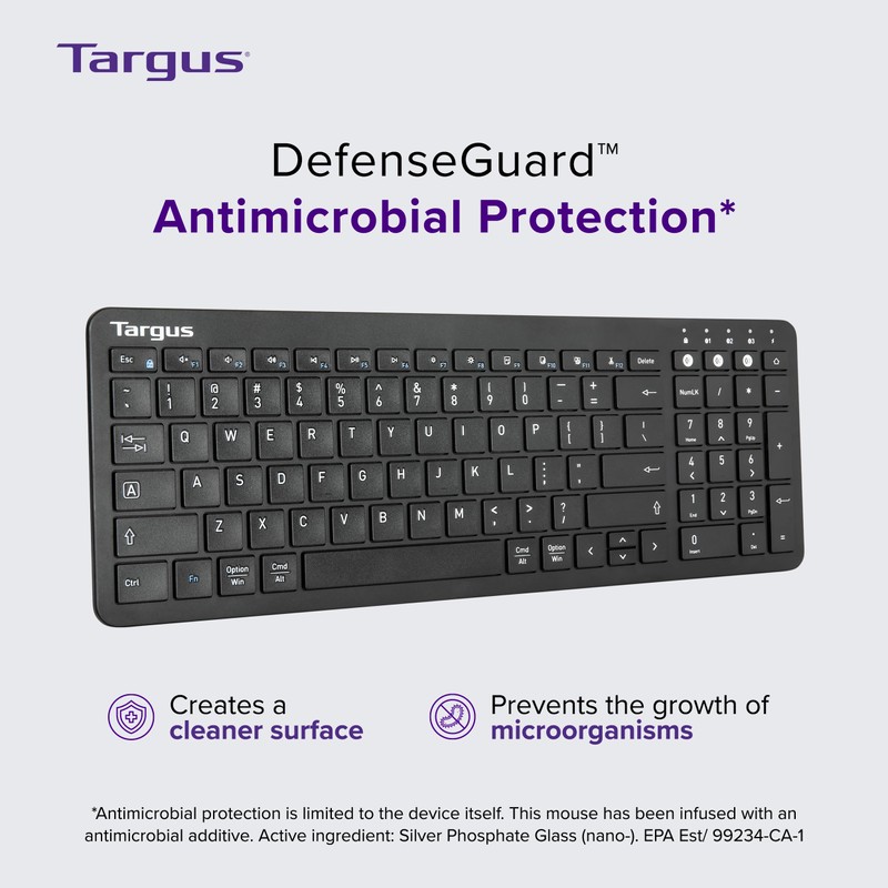 - DefenseGuard: Ideal for touch applications, Targus DefenseGuard Protection is a protective coating that does not wear off and lasts for the life of the product. This creates a cleaner touchpoint surface and works continuously to keep your keyboard safe