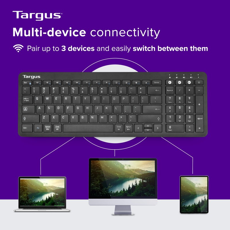 - Ready To Work: Turn any space into a workspace with this slimline multi-device keyboard. Easily connect up to 3 devices for efficient and streamlined productivity