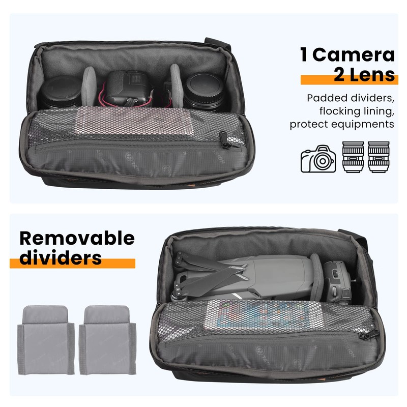 - 【Vielseitig anwendbar】: Diese Foto-Umhängetasche sowohl ideal für Kamera und Zubehör, als auch für DJI Drohnen für Außenaufnahmen oder Kurzreisen.