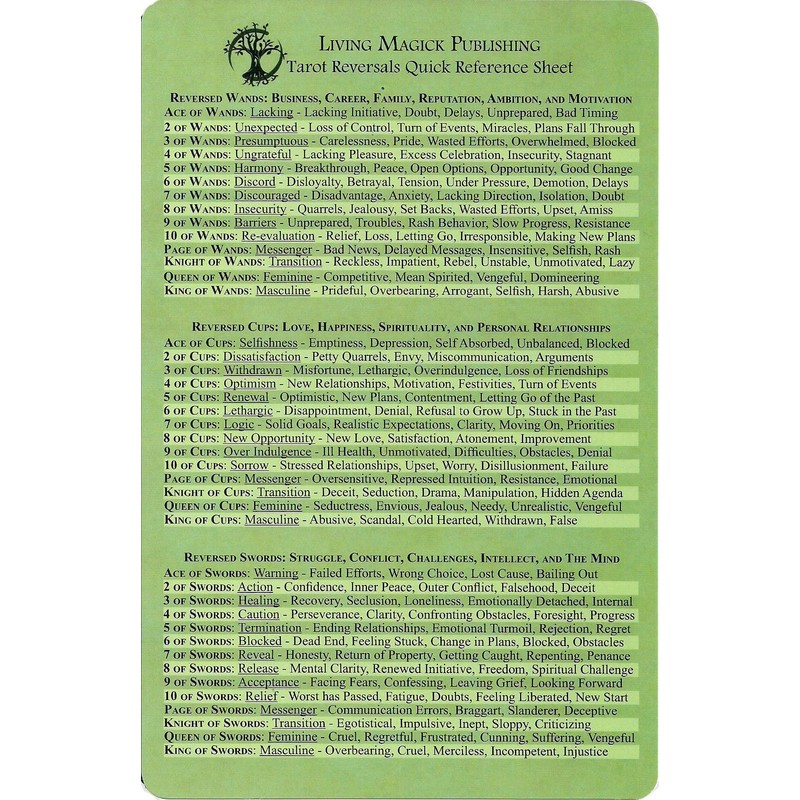Tarot Reversals Quick Reference Sheet - Living Magick (Living Magick)