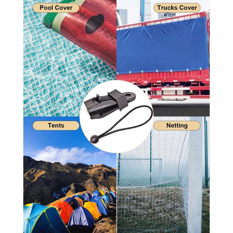 Tarp Clips Lock Grip, 40 Pack Tarp Clamps Heavy Duty and Ball Bungee Cords Set, Tent Clips with 6 Inch Bungie Cord Balls for Awnings Camping, Patio Umbrellas, Pool Awning Cover