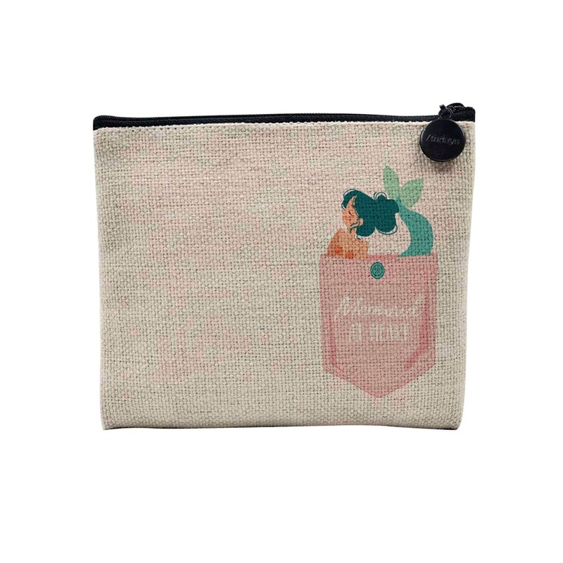 Tasche aus Leinen – Kollektion Überraschung Humor Witz niedliches Design – Kosmetiktasche aus Leinen in Leinenoptik – Kulturbeutel – Geldbörse, Mermaid, 15 x 10 cm, Kosmetiktasche