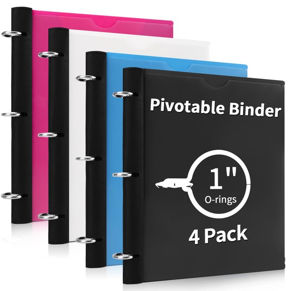 Tashkummy 360 Degree Pivotable Binder, 3 Ring Binder 1 inch 4 Pack, Flexible Binder 3 Ring, Foldable Three Ring Binder- Black, White, Pink, Blue