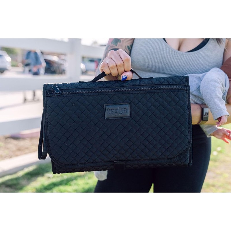 taske Active Black Quilted Diaper Changing Pad, Luxury Changing pad, Changing pad Clutch, Travel Changing pad