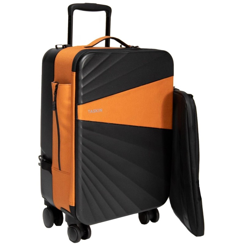 - FOUR WHEELED HYBRID CARRY-ON: Taskin Kaliber is half hard-side and half-soft, combining the rigidity and style of a hard-side carry-on with the flexibility and versatility of a soft side.