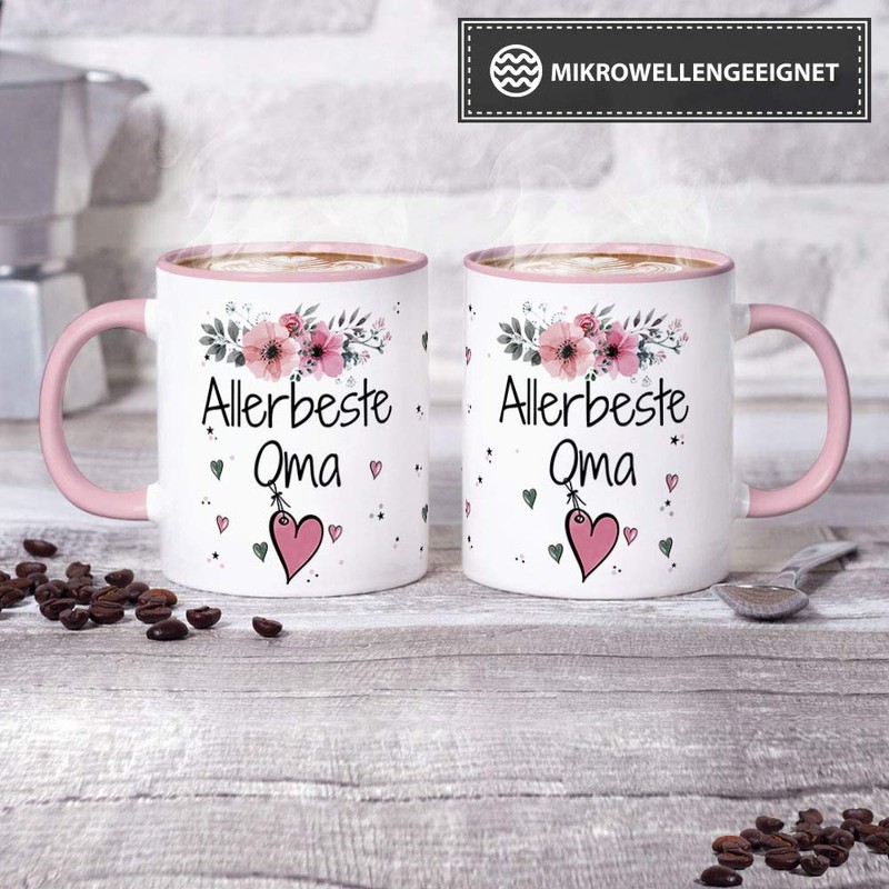 Tasse mit Spruch - Allerbeste Oma - Schöne Geschenkidee/zum Geburtstag für beste Freunde und Familie/Danke Tasse - Innen & Henkel Rosa