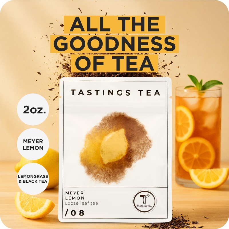 Tastings Tea Meyer Lemon Loose Leaf, 2 oz | Unsweetened Black Citrus Blend & Fruit Infusion with Lemongrass & Peel | Hot or Iced Cold Brew | Small Batch & Sustainably Sourced | Resealable Pouch