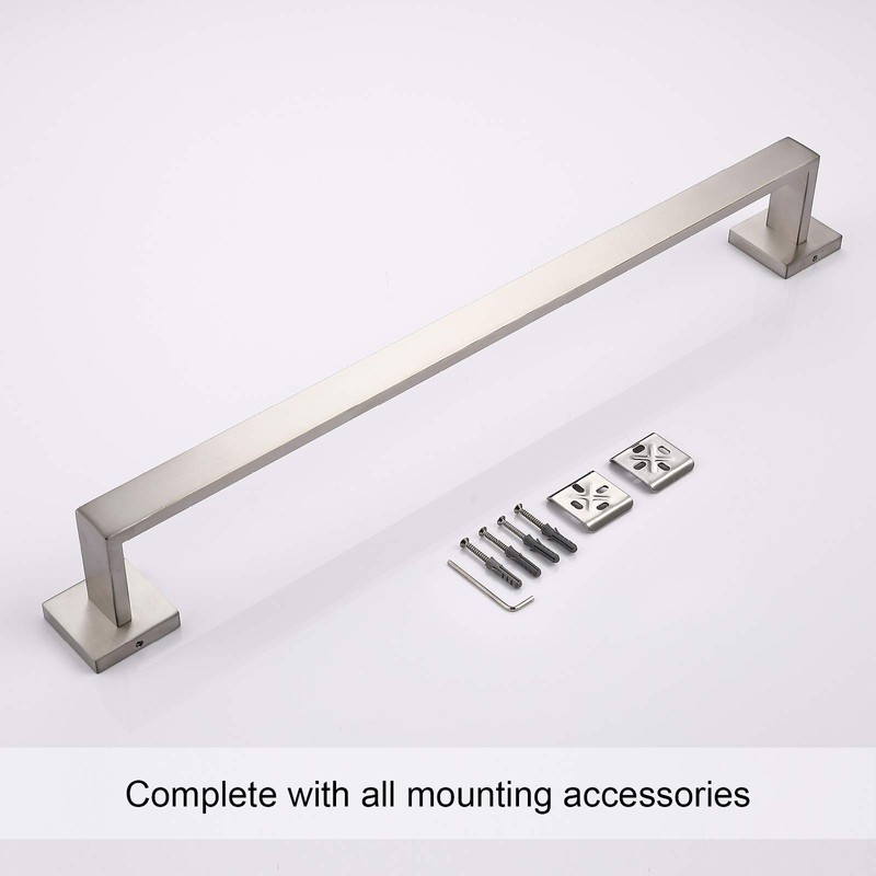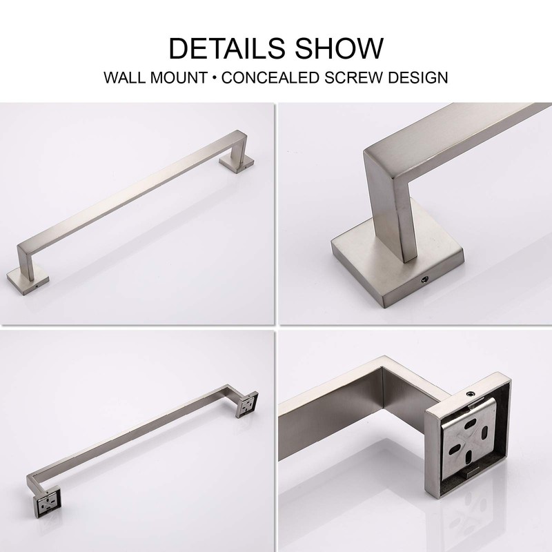• ✅ Easy Installation: All hardware fittings are included in the package, concealed Screw Mount, the mounting screws are hidden and out of sight. SUS304 stainless towel bar with square base installation make more stable.