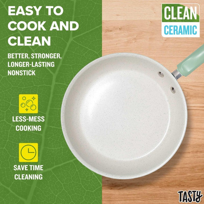 - Better, Stronger, Longer-Lasting Non-Stick: This pots and pans set features a premium, reinforced Clean Ceramic non-stick coating that allows food to easily slide out of the pan
