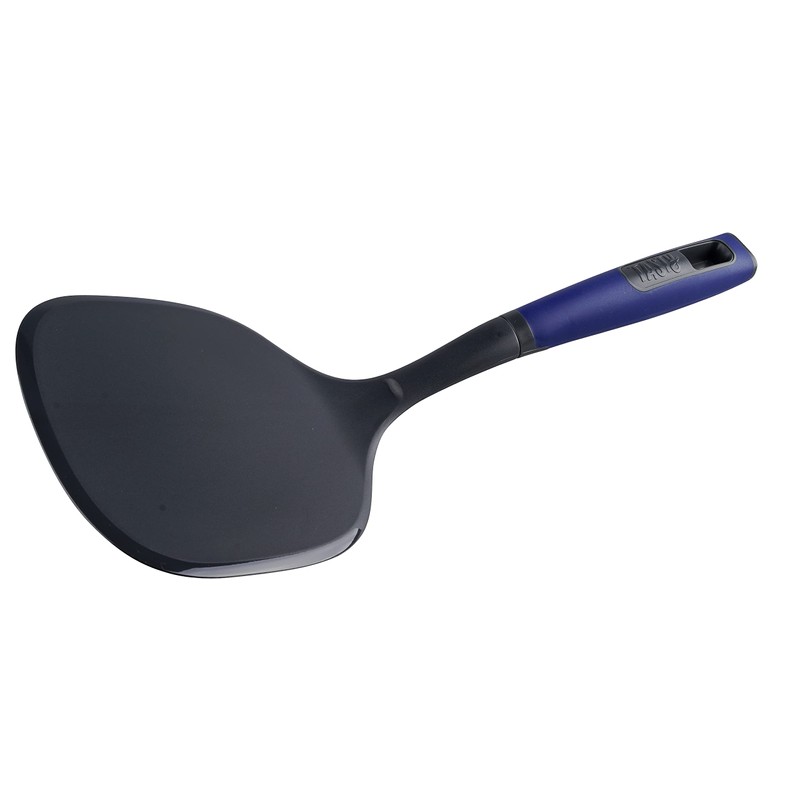 Tasty Pancake Turner with Flattened Edges, Extra Large Spatula, Soft-Touch Handle, Making & Serving Pancakes Crêpes, Suitable for Coated Pans, Dimensions: 34x15x6cm, Colour: Dark Blue, Grey