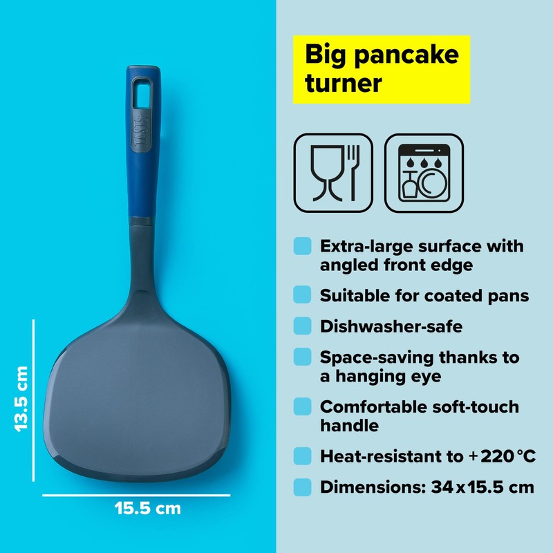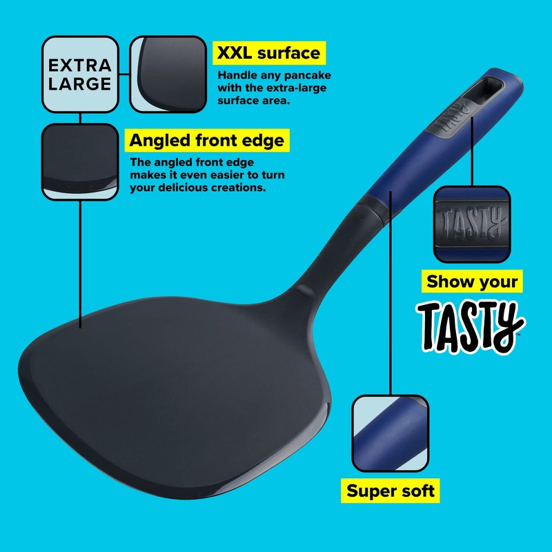 - Fun in the kitchen with the pancake spatula by Tasty: whether you are in the mood for some sweet and fluffy pancakes or some wafer-thin crêpes, the pancake kitchen turner features an extra large surface with an angled front edge, making it easy to lift and flip