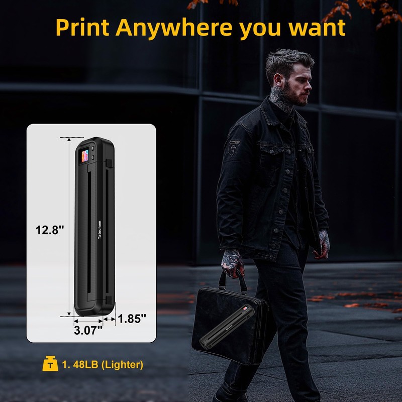 - Portable Thermal Printer: This tattoo printer match 12.8 "* 3.07" * 1.85 " size and weighs 1.48 pounds, making it easy to carry. Built-in 2500mAh high-capacity battery, which has a longer lasting battery. The tattoo thermal printer is easy to use and is perfect for beginners, tattoo enthusiasts, and tattoo artists. Start your tattoo creation now.