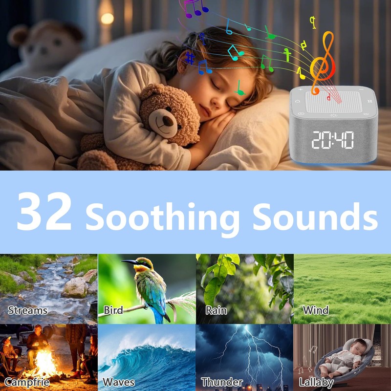 - 🎵【32 Non-Looping Soothing Sounds】 The white noise machinefor adults has 32 relaxing sounds including white noise, rain, waves, birdsong, gentle trains, etc natural sounds. It effectively blocks disruptive noises and creates a peaceful sleep environment for babies, kids and adults.