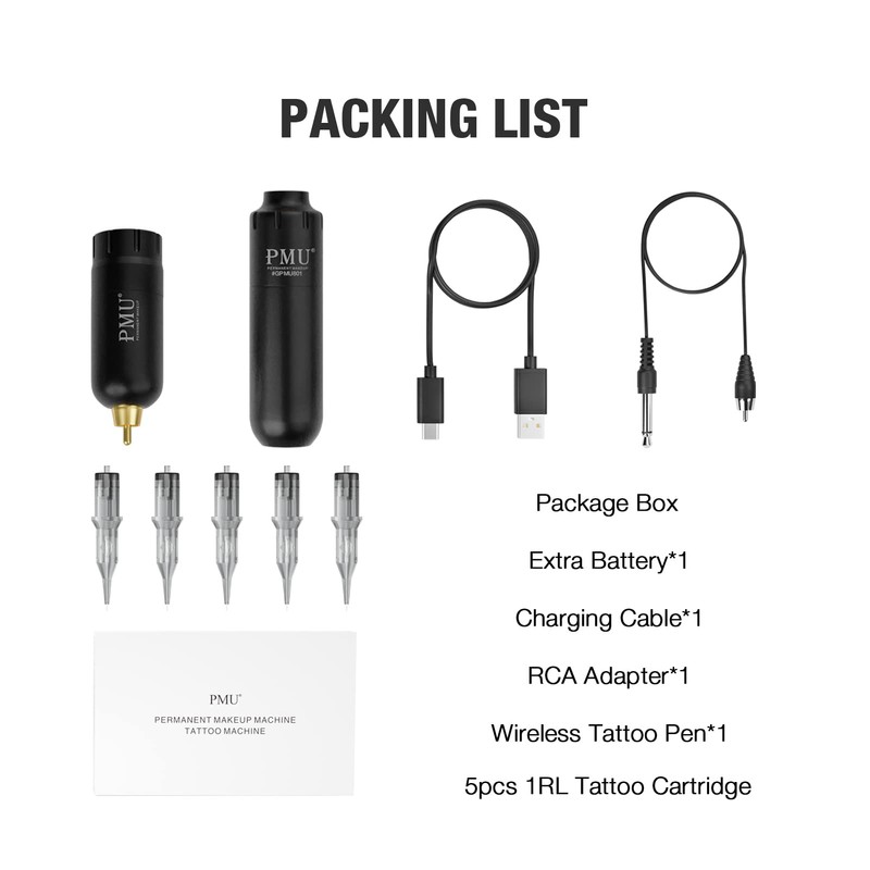 • 【Tattoo Pen Set】Package includes: 1 x tattoo pen, 1 x battery, 5 x tattoo needle cartridges, 1 x RCA connection cable and 1 x Type-C power cable. Beautifully packaged, the professional tattoo pen set is suitable for both beginners and tattoo students, as well as a gift for yourself.