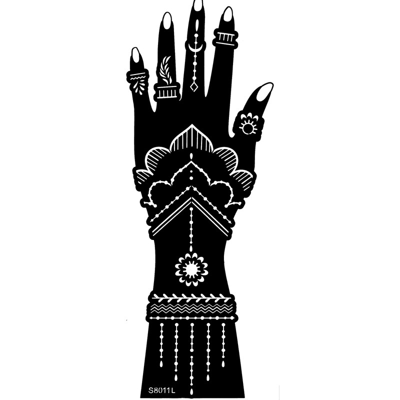 - You will receive 6 x Henna Tattoo Stencils for Hands and Arms - as pictured.. Suitable for Henna, Glitter and Air Brush Tattoos.