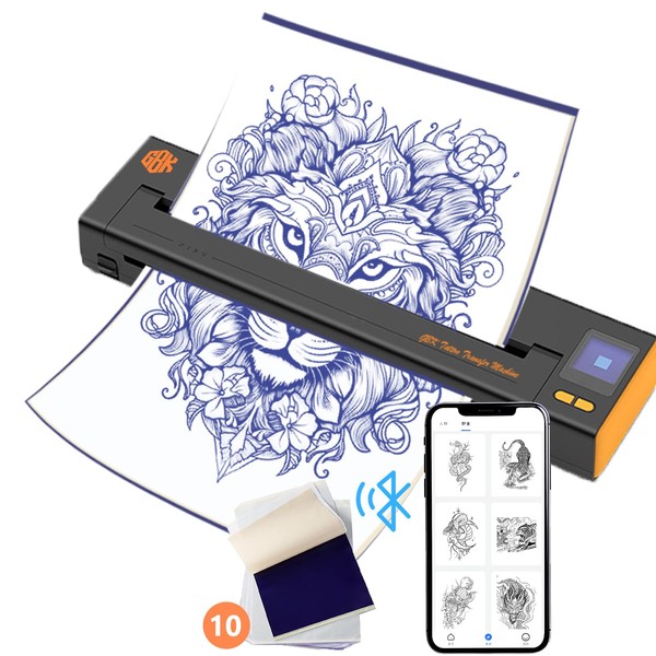 Tattoo Thermal Stencil Printer,Wireless Bluetooth Tattoo Transfer Machine kit with 10 Transfer Papers,Compatible with Smartphone/iPad&Pc,for Tattoo Artists&Beginners